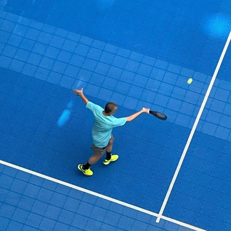 Ons speelveld bestaat uit kunststof vloerdelen van marktleider VersaCourt. De vloerdelen hebben een perfecte balstuit en grip en is goedgekeurd door de Internationale Tennisfederatie. De 200 m² vloer is een kunststof tegel systeem, dit zorgt voor optimale flexibiliteit waardoor we de padelbaan snel en overal kunnen opbouwen.